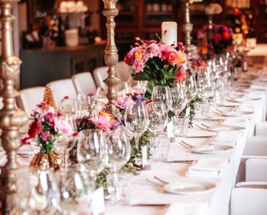 Fleurs a la Maison maakt het compleet met decoratie en bloemwerk passend bij het thema of in uw bedrijfskleuren.